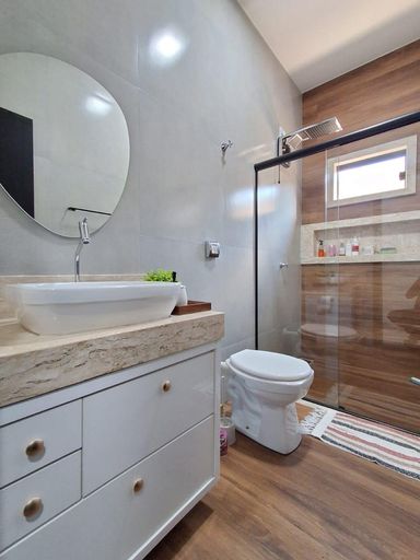 Acabamento em porcelanato e laje, trazendo conforto térmico