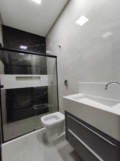 Conta com 2 vagas de garagem, área de serviço, acabamento em porcelanato e 160 m² de terreno, garantindo conforto e durabilidade para toda a família.