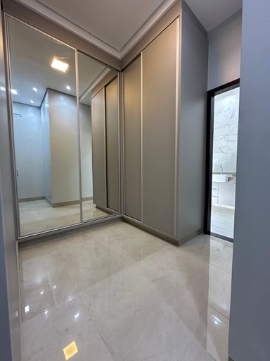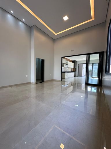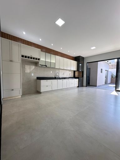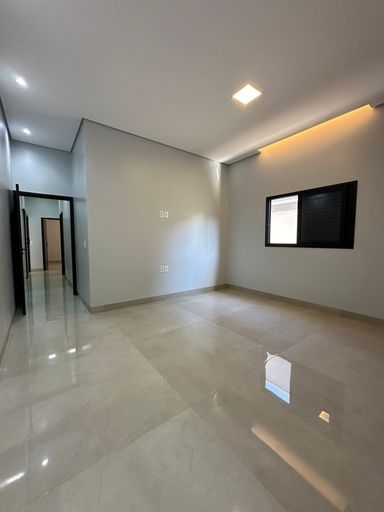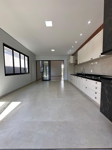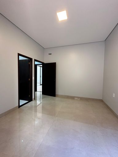 cômodo ao lado da sala principal que poderá ser usada como quarto de hóspede ou escritório;Cozinha com pontos de iluminação na lateral acima da pia, revestimento com porcelanato polido em toda parede atrás da bancada, pia espaçosa em granito preto, torneira gourmet móvel, base abaixo da pia para colocação de armários planejados, churrasqueira revestida com porcelanato mais escuro e piso porcelanato fosco;Quartos espaçosos, gesso com iluminação interna na latera, luz na cor amarela, janela em esquadria preta, um dos quartos contém closet que vem com base para colocação de armários planejados.
